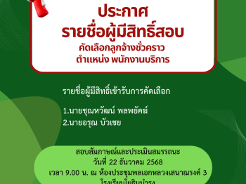 ประกาศรายชื่อผู้สมัครเข้าร่วมการแข่งขันวัดความรู้ทางวิชาการ