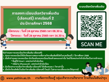 ประกาศโรงเรียนโยธินบำรุง เรื่อง การสอบแข่งขันวัดความรู้ […]