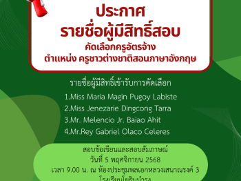 ประกาศโรงเรียนโยธินบำรุง เรื่อง การสอบแข่งขันวัดความรู้ […]
